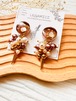 Autumn Pearl(ピアスorイヤリング)は、秋冬にぴったりのアクセサリーです。ブラウンベースにシェルを埋め込んだカボションが上品な印象を与え、パープルとホワイトのパールタッセルが華やかさをプラスしています。どんなコーディネートにも合わせやすく、季節感を演出できるアイテムです。